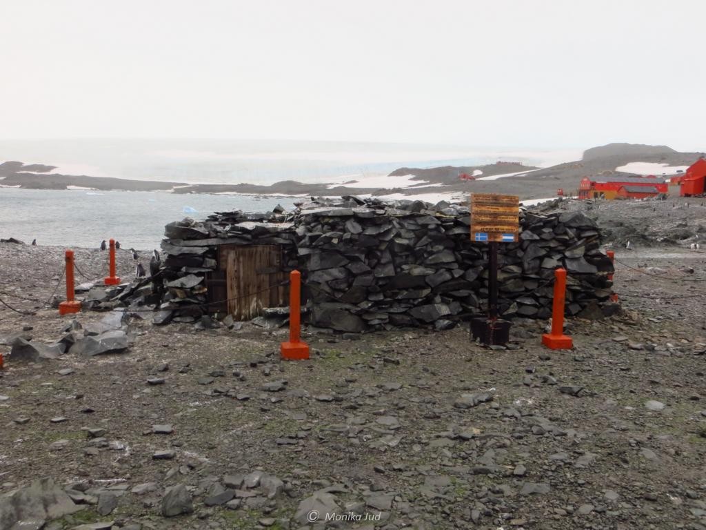 Hier in den flachen, engen, zugigen Mauern hausten drei von ihnen. Nur ein zurück gebliebenes Segel diente ihnen als dünnes Dach. Bei Frost, Nässe und Sturm zwangen sich die Männer zu überleben, zu jagen und die verschollenen Kollegen zu finden. Noch heute ist der Name dieser Bucht aus diesem Grunde „Hope Bay“.