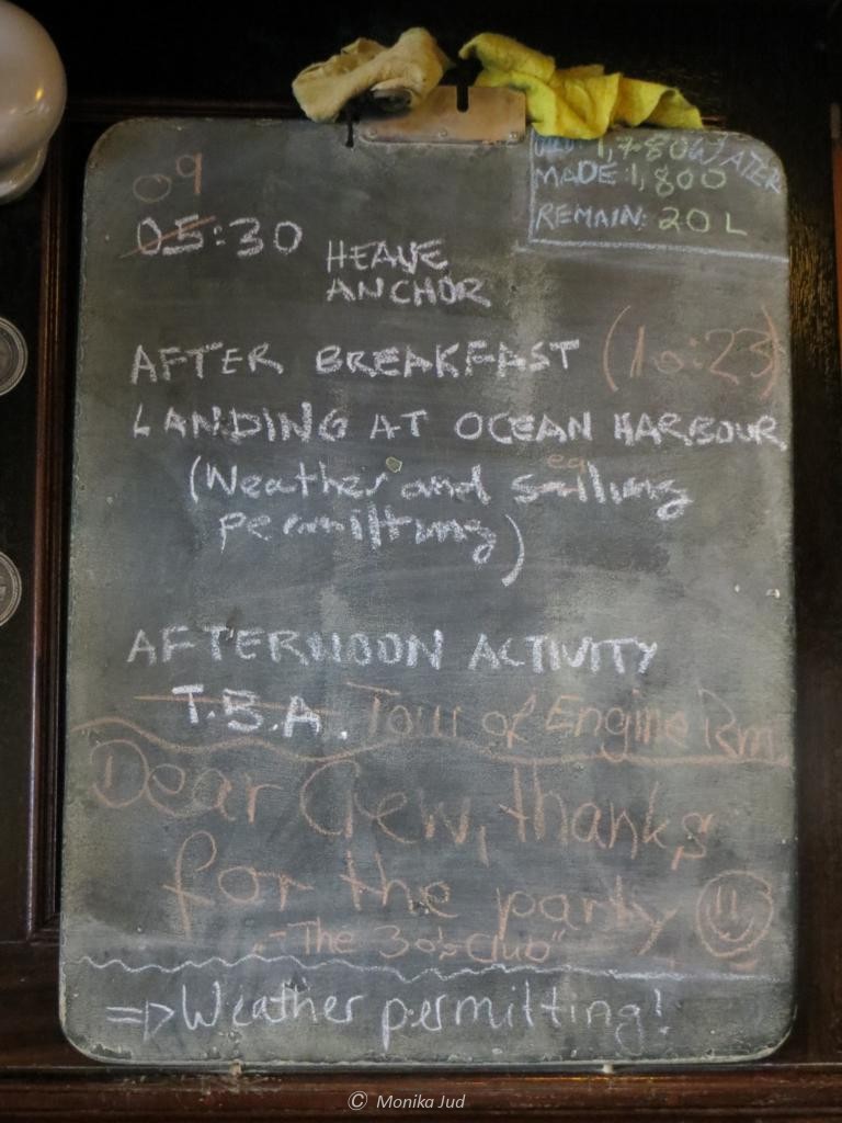 Und der Duft unserer Steaks muss wohl die ganze Bucht erfüllen. Es ist also kein Wunder, dass die Bucht schnell menschenleer ist und alle „Bewohner“ sich plötzlich auf dem Schiff versammeln. Wie häufig kommt es schon vor, dass man nach der Einreise in ein Land mit dem Grenzbeamten abends noch ein Bierchen trinkt? …